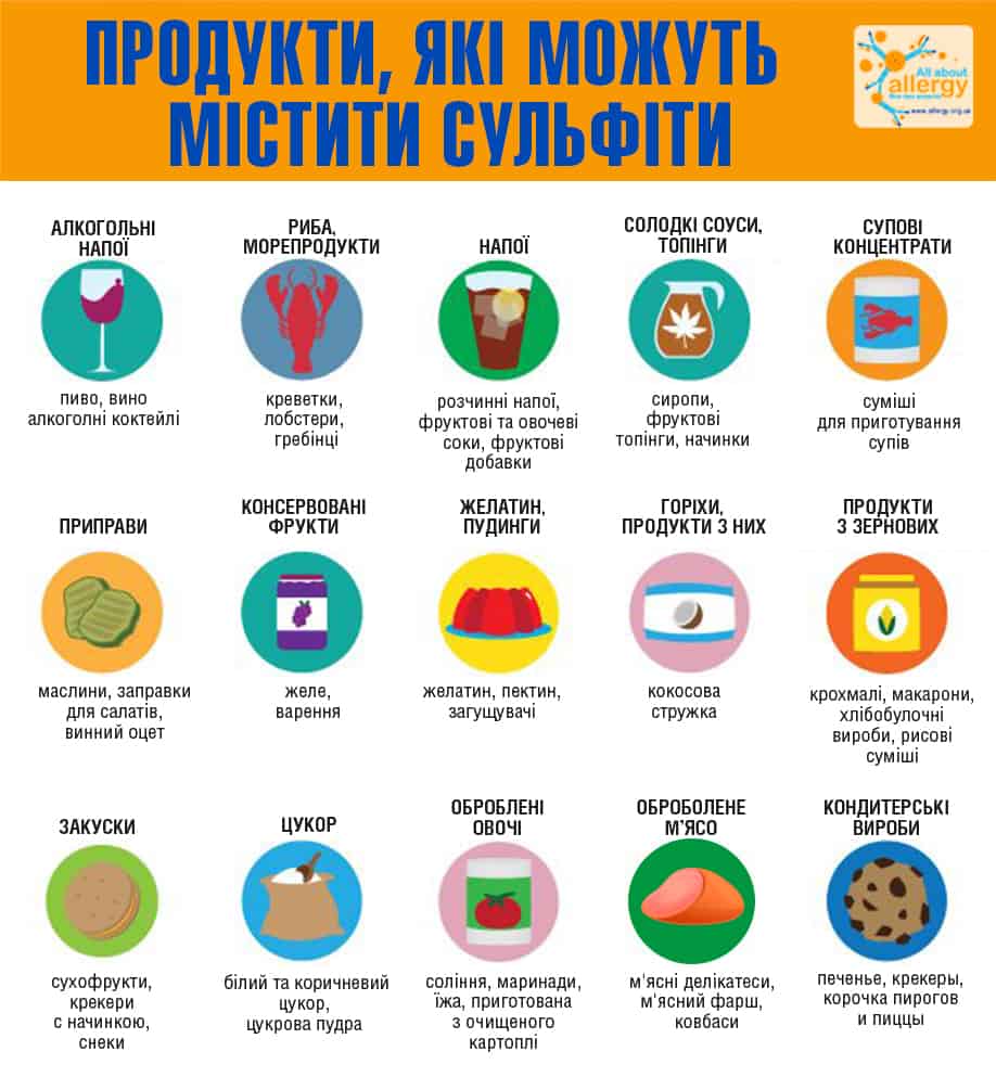 Перелік сульфітовмісних продуктів та страв дуже великий: