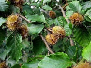 Бук (Fagus sylvatica) – дерево до 40 м заввишки, яке утворює сильні, прямі та високі стовбури. Кора бука гладенька, сріблясто-сіра, пагони червонуваті, листки по краях опушені. Плід бука – два однонасіннєві горішки в одній вкритій щетиною коробочці. У великих кількостях ці плоди слабоотруйні через вміст щавлевої кислоти.