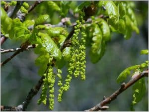 Дуб цвіте від середини квітня на Півдні та до середини-кінця травня у Центрі України та на Півночі.