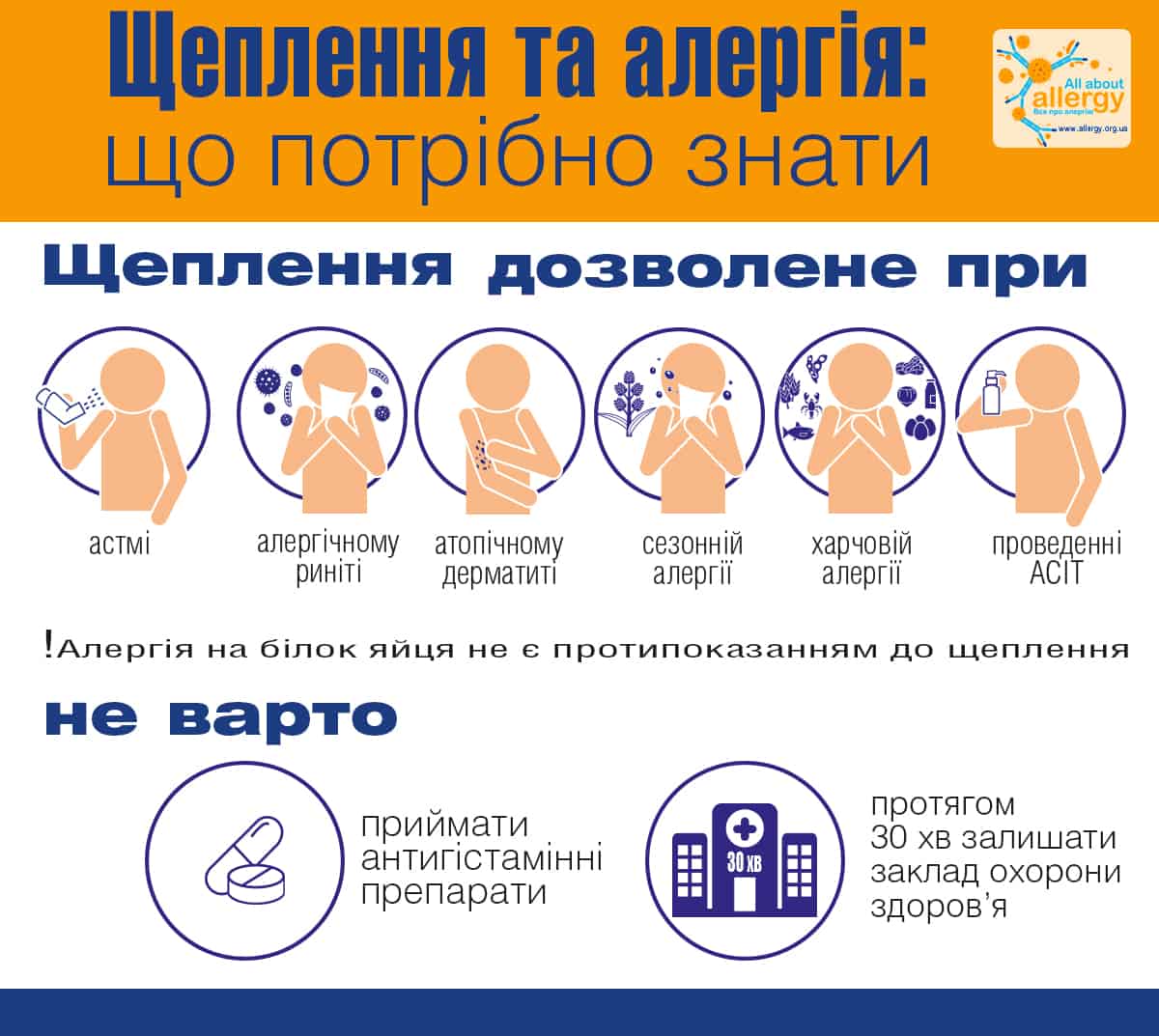 Але якщо в анамнезі у вас є побічні реакції на щеплення або атопія, перед тим, як проводити вакцинацію, проконсультуйтеся зі своїм лікарем.
